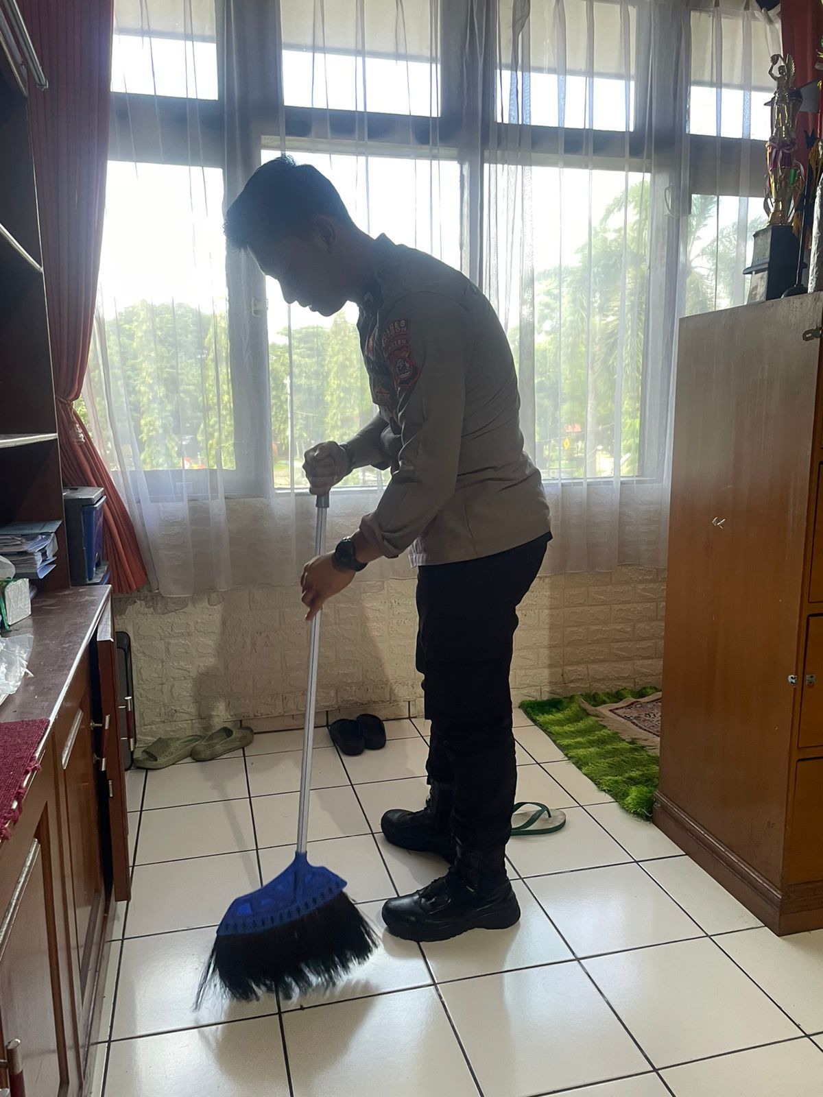 Anggota Bag SDM Polres Cilegon, Selalu aktif dalam melaksankan kegiatan membbersihkan ruangan kerja secara rutin.