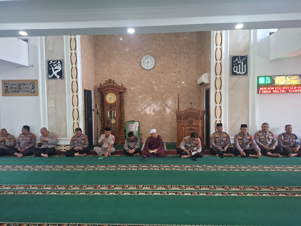 Cilegon,Polres Cilegon Polda Banten Pada Kamis 5/3/2026 Pukul 08.30 Wib, Personil Siwas Polres Cilegon, Kasiwas Polres Cilegon Beserta anggota Mengikuti kegiatan Pengajian Rutin setiap Hari kamis yang di laksnakan di masjid al-Hidayah Polres Cilegon.
