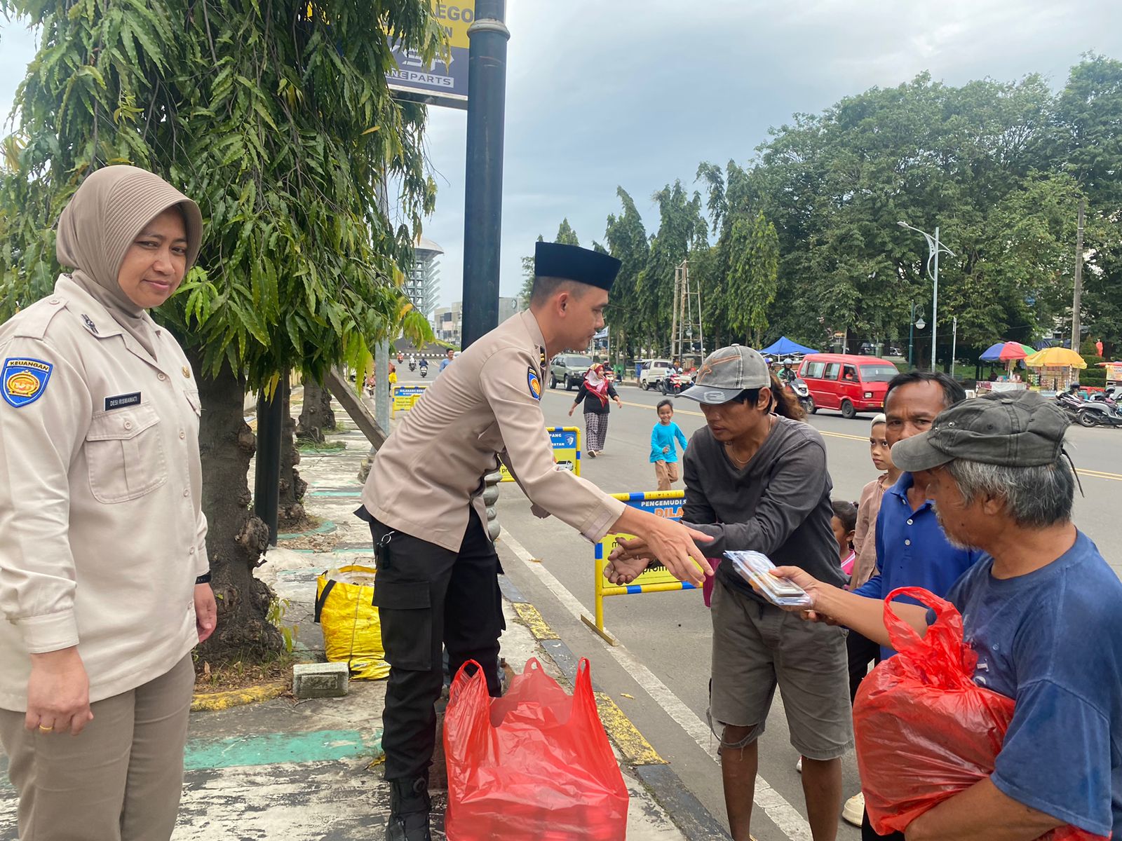 turun langsung ke jalan untuk membagikan takjil kepada pengendara dan