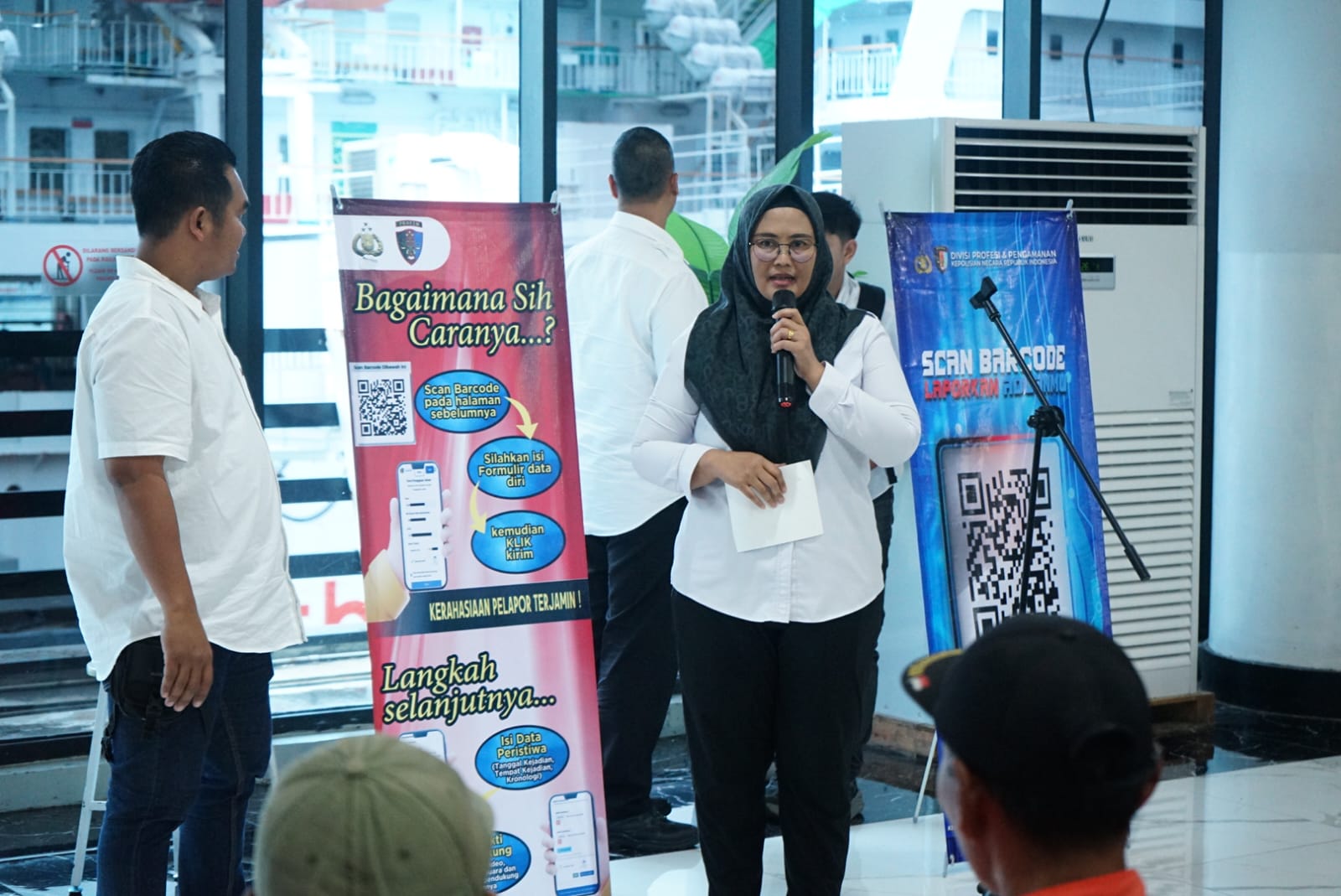 Polda Banten Sosialisasikan QR Barcode Pengaduan Bidpropam Polda Banten di Pelabuhan Merak