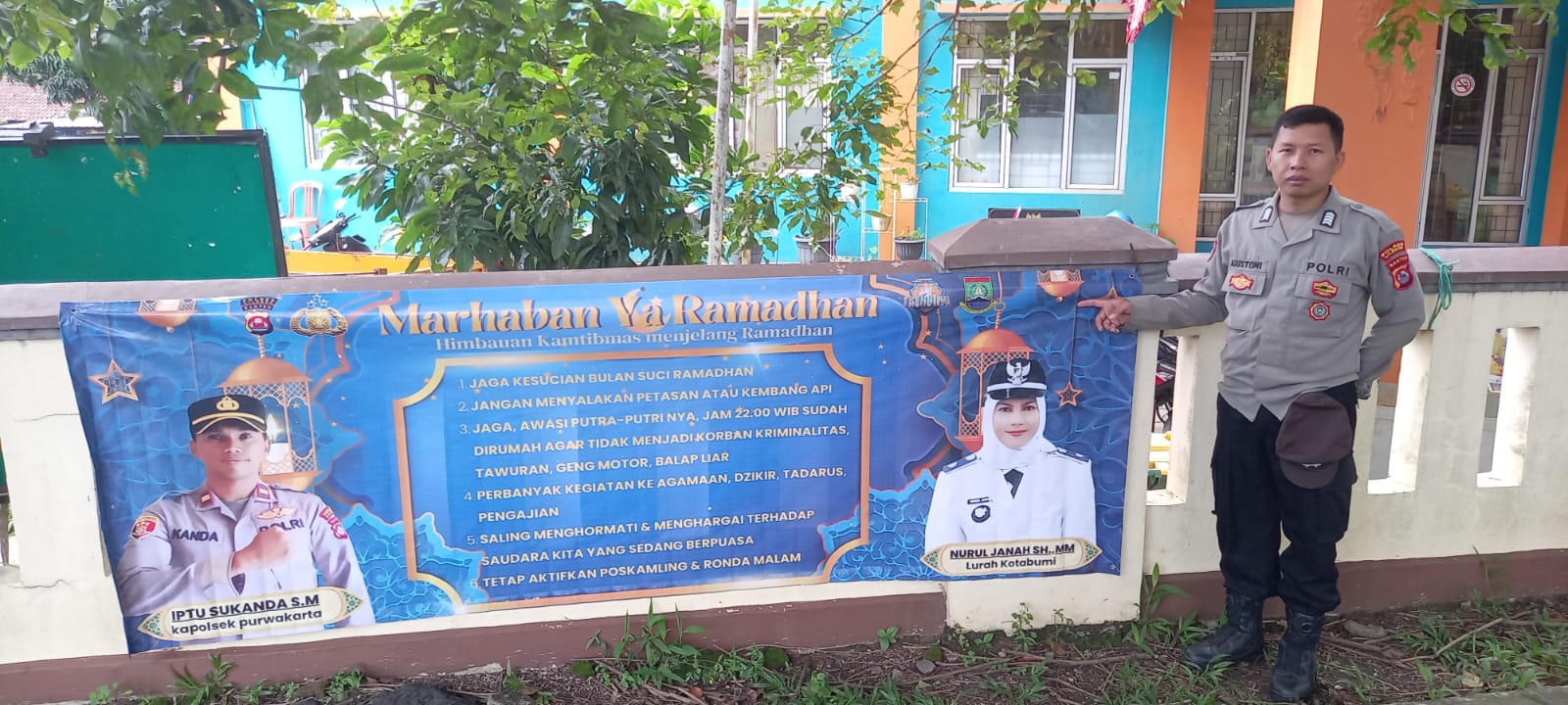 Kapolsek Purwakarta IPTU Sukanda menyampaikan bahwa pemasangan spanduk himbauan tersebut merupakan salah satu upaya Polri dalam memberikan edukasi serta mengajak masyarakat untuk bersama-sama menjaga kondusifitas wilayah selama bulan Ramadhan.