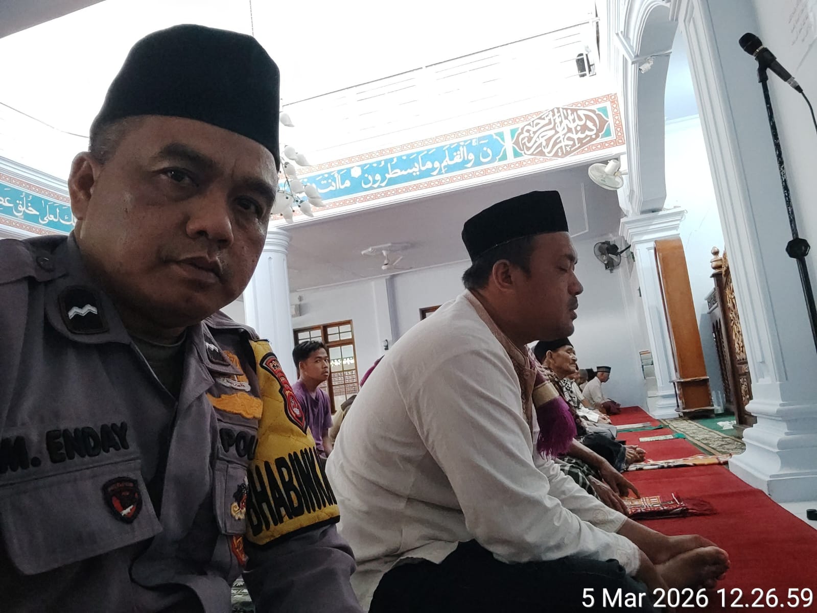 Cilegon - Dalam Rangka Implementasi Program Kapolda Banten Yaitu Sholat  Berjama’ah Serta Memakmurkan Masjid Bhabinkamtibmas Polsek Ciwandan Polres Cilegon Polda Banten Sholat Berjama’ah dan Bersilaturahmi Bersama masyarakat sebagai upaya meningkatkan Ukhuwah Islamiyah dalam menjalin silaturahmi dan membangun komunikasi yang baik, Kamis (05/03/2026).