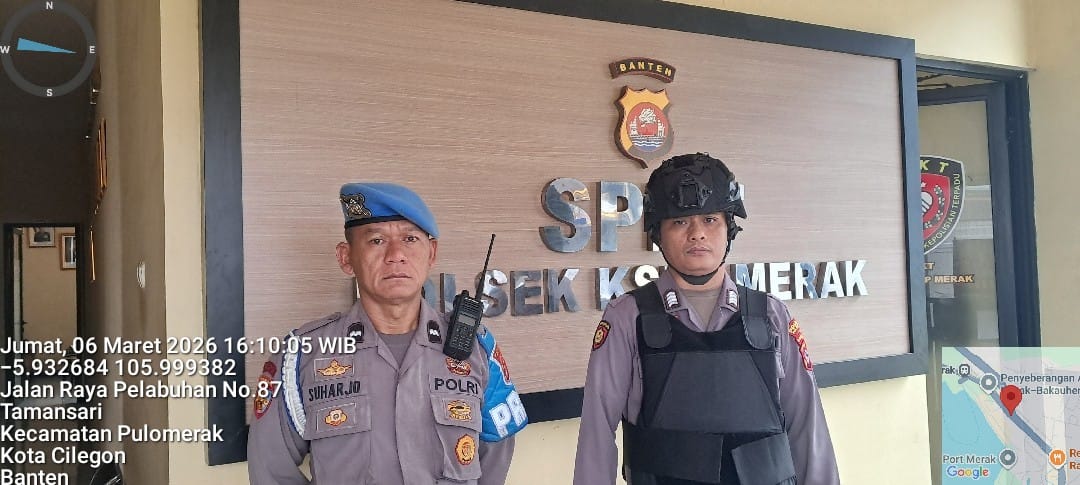 Cilegon - Personel piket jaga Polsek Kskp Merak Polres Cilgon Polda Banten melaksanakan siaga 1 Polsek pelaksanaan Sispam Mako oleh piket siaga dipimpin oleh Kspk Polsek Kskpy Merak Polres Cilegon Polda Banten, Jumat (06/03/2026).