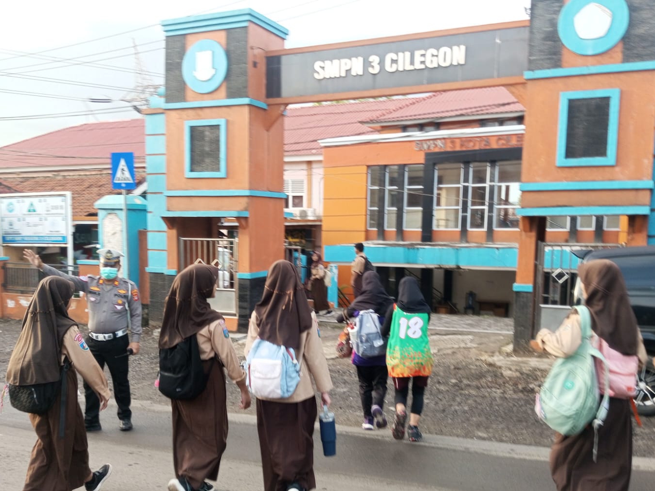 Kanit Lantas Polsek Pulomerak Bantu atur lalin di depan SMP 3 Cilegon