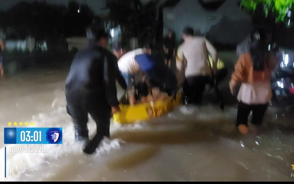 Di Perumahan Metro Cilegon : Polres Cilegon Lakukan Evakuasi Warga Terdampak Genangan