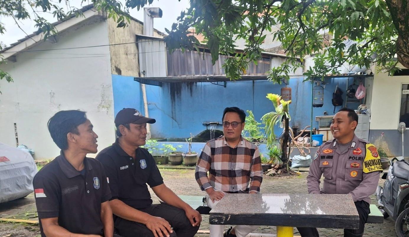 CILEGON - Personel Polsek Cibeber Polres Cilegon Polda Banten menyambangi petugas keamanan (satpam) di wilayah hukum Polsek Cibeber untuk memberikan imbauan keamanan dan ketertiban masyarakat (kamtibmas).