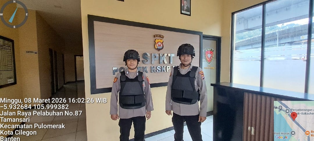 Cilegon - Personel piket jaga Polsek Kskp Merak Polres Cilgon Polda Banten melaksanakan siaga 1 Polsek pelaksanaan Sispam Mako oleh piket siaga dipimpin oleh Kspk Polsek Kskpy Merak Polres Cilegon Polda Banten, Minggu (08/03/2026).