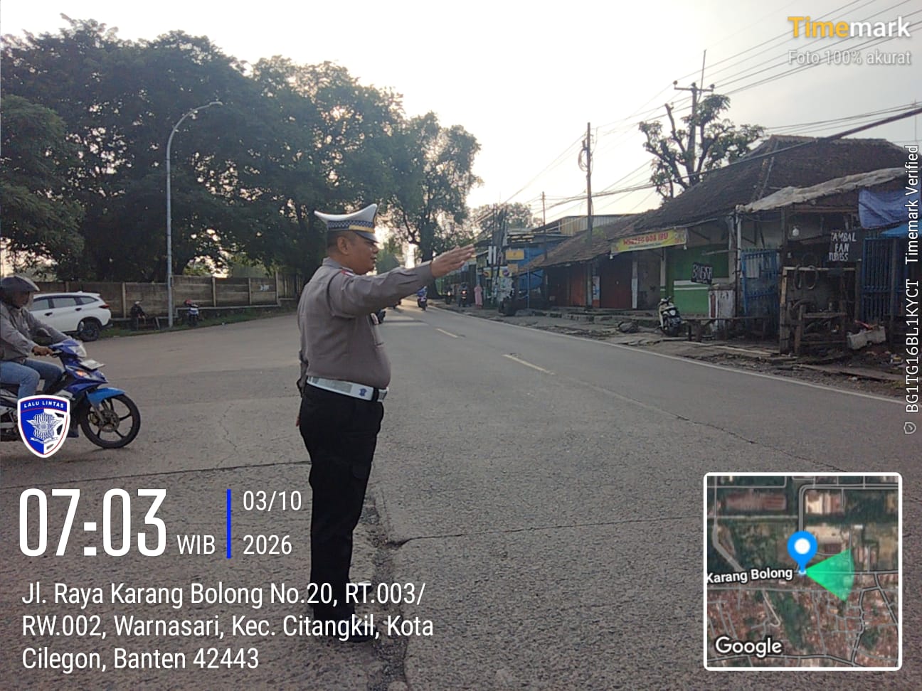 Cilegon - Guna Kelancaran Lalu-lintas Personil Unit Lantas Polsek Ciwandan Polres Cilegon Polda Banten melaksanakan pengaturan lalu-lintas di Simpang Beringin Ciwandan Pertigaan Kawasan Industri KSP/ KIEC I  kelurahan Warnasari Kecamatan Citangkil Kota Cilegon, Senin (09/03/2026).