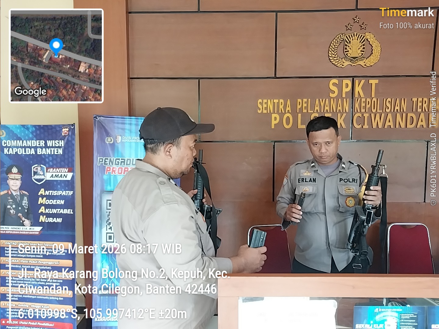 Kapolres Cilegon Polda Banten AKBP Dr. Martua Raja Taripar Laut Silitonga Melalui Kapolsek Ciwandan Polres Cilegon Polda Banten KOMPOL Achri Dwi Yunito Menekankan dan menegaskan dalam serah terima tugas jaga Mako dan pelayanan KA-SPKT wajib mengecek barang Inventaris mulai dari Senpi Dinas, Mobil Patroli, serta barang Inventaris lainya termasuk Mako apabila ada hal yang tidak sesuai wajib di cek secara seksama sehingga sewaktu serah terima tidak ada yang terabaikan dan dapat dipertanggung jawabkan, ungkapnya.
