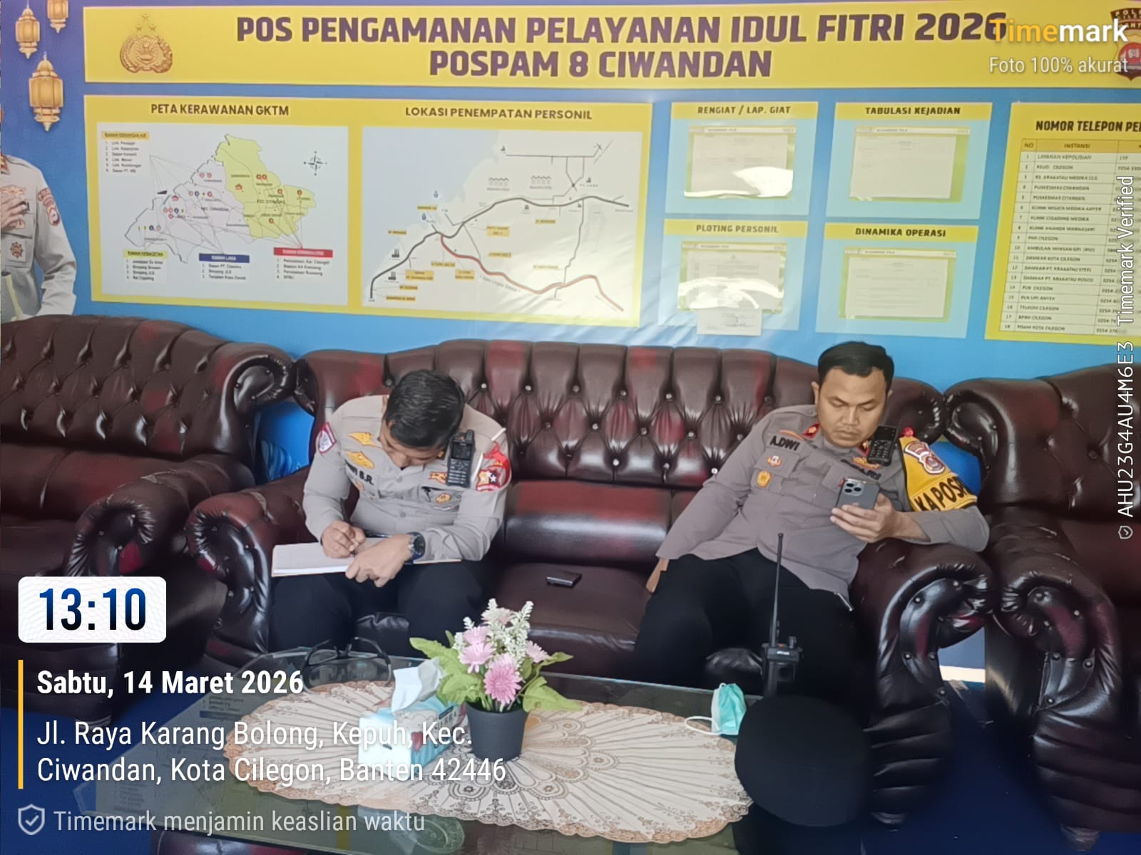 Cilegon - Kunjungan OPS "KETUPAT MAUNG-2026" di Pos Pam 8 Ciwandan, Cilegon, Banten, hari ini (Sabtu, 14 Maret 2026) mendapat perhatian khusus dari Kombes Pol Dwi Sumrahadi R, Kasubdit Dakgar Korlantas Polri selaku Pamatwil Merak Ciwandan. Kunjungan ini bertujuan untuk memastikan situasi kamtibmas tetap kondusif selama bulan puasa dan Idul Fitri 1447 H tahun 2026, Sabtu (14/03/2026).