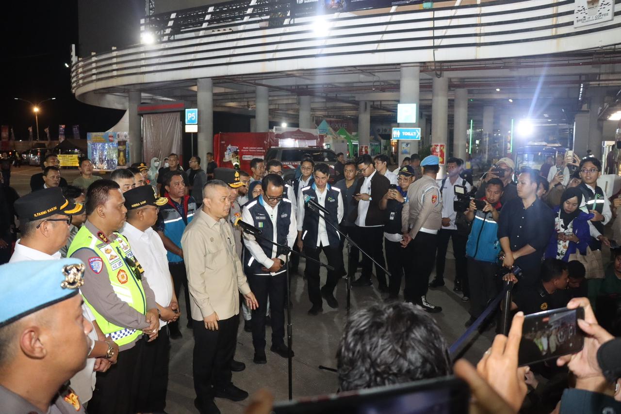 Dalam konferensi pers yang digelar sekitar pukul 22.30 WIB, Kapolda Banten menyampaikan sejumlah strategi yang telah disiapkan untuk mengantisipasi lonjakan kendaraan. Salah satunya adalah penerapan delaying system di ruas Tol Tangerang–Merak, tepatnya di KM 43 dan KM 68, guna menahan kendaraan apabila kapasitas pelabuhan telah penuh.