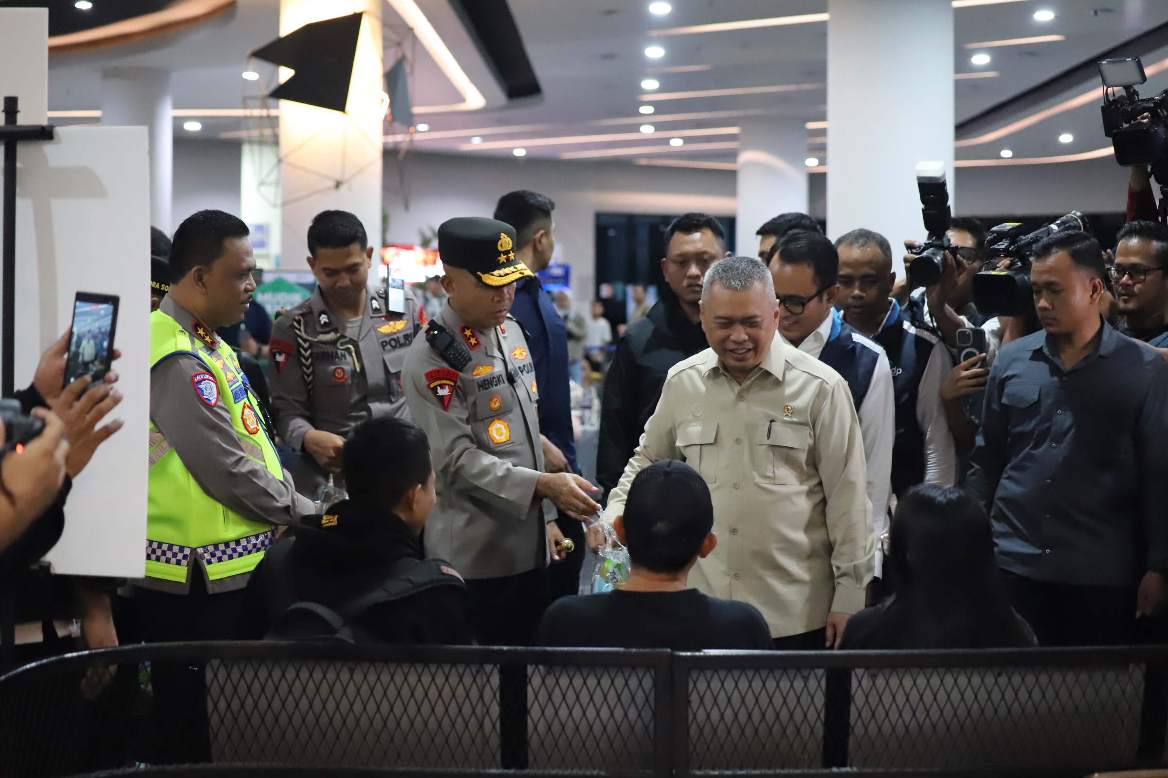 Di lokasi tersebut, Menhub bersama Kapolda Banten dan jajaran menyapa para pemudik sepeda motor serta membagikan bingkisan berupa makanan ringan dan minuman. Menhub juga menyampaikan apresiasi kepada jajaran kepolisian atas pengamanan yang telah berjalan dengan baik serta mengimbau para pemudik untuk selalu mengutamakan keselamatan dan memanfaatkan pos pelayanan apabila merasa lelah.