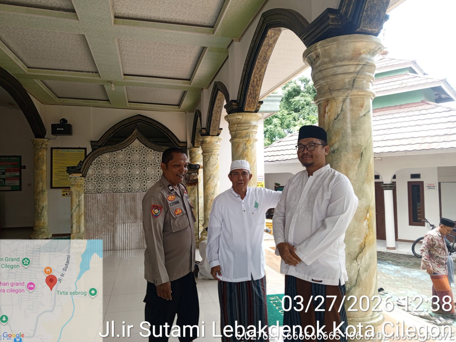 Cilegon - Dalam Rangka Memakmurkan Masjid Dan Sambang,Bhabinkamtibmas Polsek Ciwandan Polres Cilegon Polda Banten Sholat Berjama’ah dan Bersilaturahmi kepada para tokoh Agama sebagai upaya meningkatkan Ukhuwah Islamiyah dalam menjalin silaturahmi dan membangun komunikasi yang baik, Jum'at (27/03/2026).