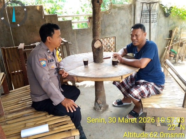 Bhabinkamtibmas Menyempatkan diri untuk dialogis bersama warga masyarakat, dengan dialogis mengajak peran serta bersama dalam menjaga lingkungan dari potensi gangguan keamanan yang setiap saat bisa terjadi, ungkapnya.