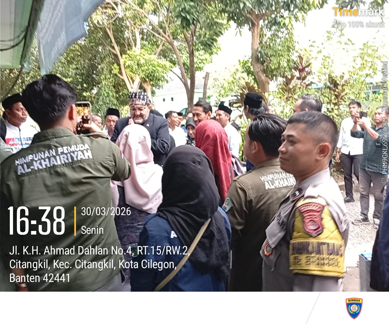 Cilegon - Bhabinkamtibmas Kelurahan Citangkil Polsek Ciwandan Polres Cilegon Polda Banten AIPDA Warudin, menghadiri kegiatan Halal Bihalal PB Alkhairiyah bersama Duta Besar Republik Islam Iran, MUMAMMAD BOROUJERDI, dan tim di Aula PB Alkhairiyah, Citangkil, Senin (30/03/2026).