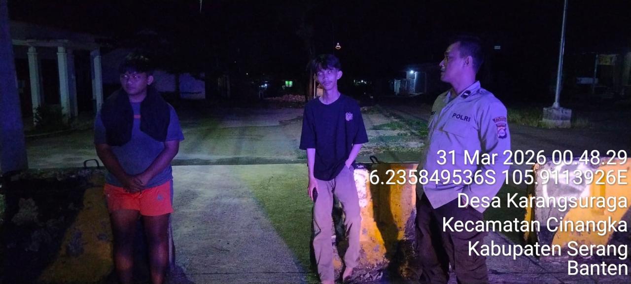 *Cilegon* – Dalam Rangka Pencegahan Kejahatan Jalanan dan Memelihara situasi keamanan dan menjaga serta memberikan rasa aman dan nyaman di masyarakat,Salah satu upaya untuk mewujudkan hal tersebut sebagaimana yang dilakukan oleh Personil Polsek Cinangka Polres Cilegon Polda Banten melaksanakan giat patroli blue light malam hari hingga menjelang pagi, Selasa (31/03/2026).