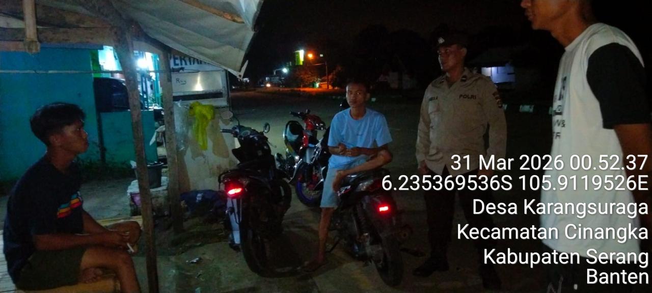 *Cilegon* – Dalam Rangka Pencegahan Kejahatan Jalanan dan Memelihara situasi keamanan dan menjaga serta memberikan rasa aman dan nyaman di masyarakat,Salah satu upaya untuk mewujudkan hal tersebut sebagaimana yang dilakukan oleh Personil Polsek Cinangka Polres Cilegon Polda Banten melaksanakan giat patroli blue light malam hari hingga menjelang pagi, Selasa (31/03/2026).