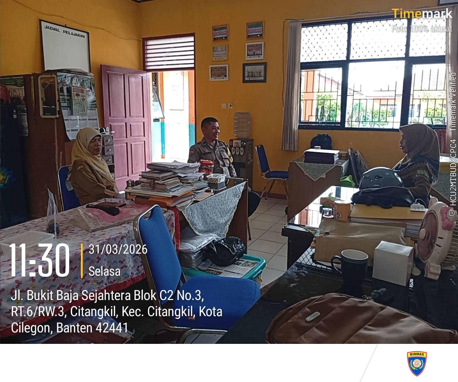 Cilegon - Bhabinkamtibmas Polsek Ciwandan Polres Cilegon Polda Banten Sampaikan Pesan-Pesan Kamtibmas Kepada Dewan Guru, Selasa (31/03/2026).