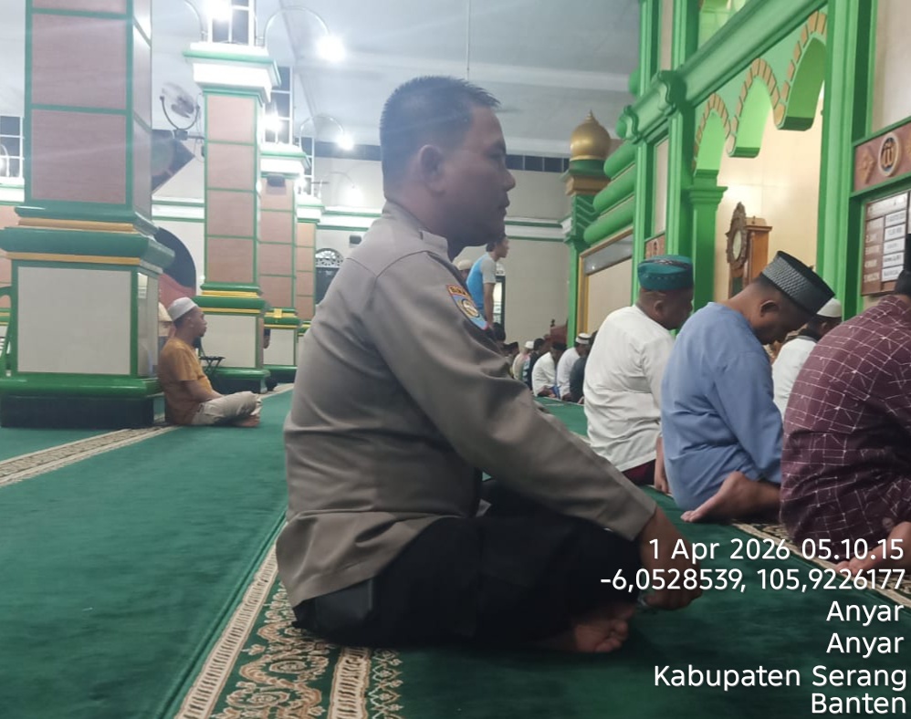 Cilegon – Polres Cilegon Polda Banten, Personil Polsek Anyer Polres Cilegon menggelar kegiatan Pembinaan Rohani dengan shalat subuh keliling di Masjid At Taubah Gang. Masjid Ds. Anyar Kec. Anyar Kab. Serang, Rabu (01/04/2025).