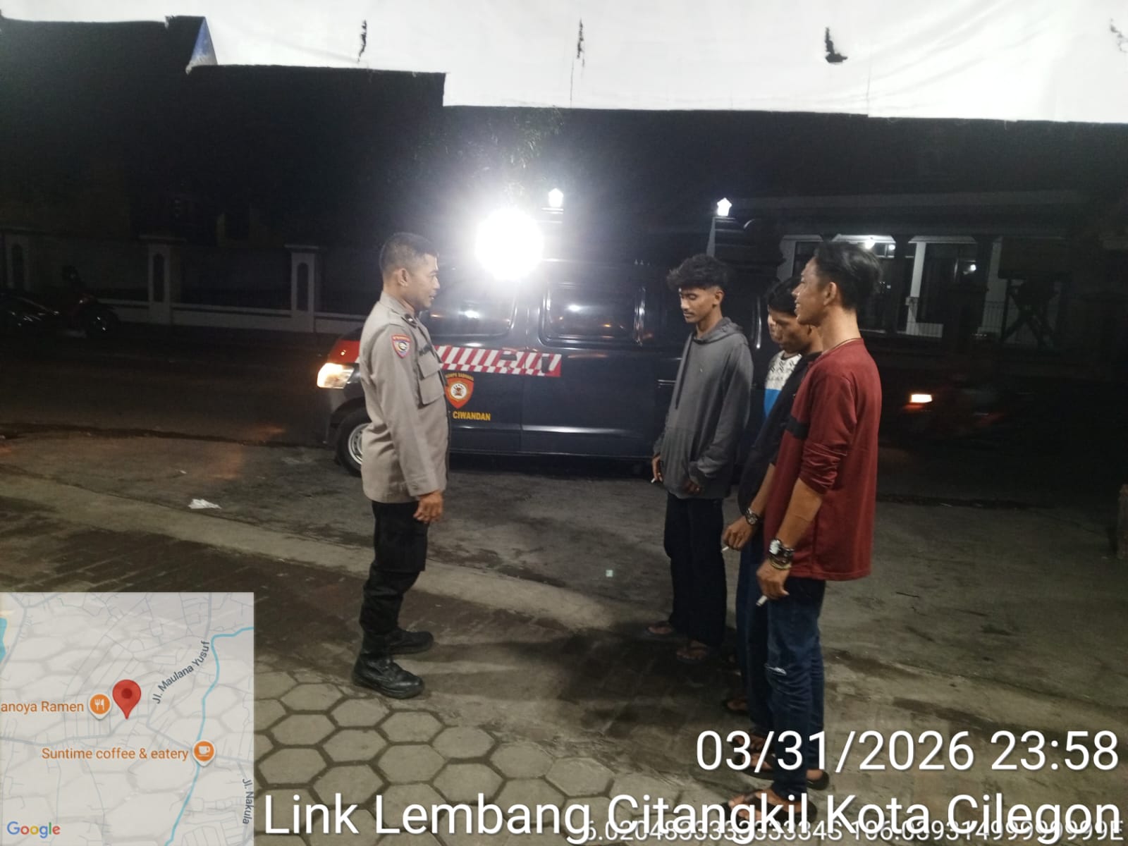 Kapolres Cilegon Polda Banten AKBP Dr. Martua Raja Taripar Laut Silitonga Melalui Kapolsek Ciwandan Polres Cilegon Polda Banten KOMPOL Achri Dwi Yunito Mengatakan bahwa setiap malam Personil Polsek Ciwandan Polres Cilegon Polda Banten menggelar patroli dengan menyasar daerah rawan dan Pada Jam Yang Dianggap Rawan, Hal tersebut dilakukan untuk mencegah terjadinya gangguan kamtibmas seperti kejahatan jalanan jambret ataupun curanmor.