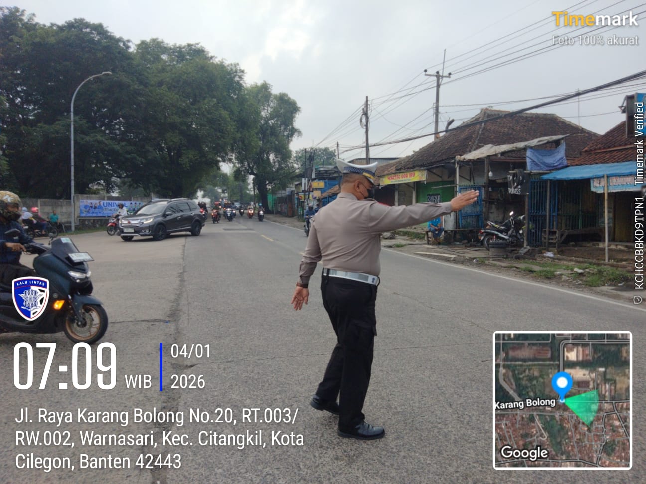 Cilegon – Berikan Pelayanan Kepada Masyarakat Personil Polsek Ciwandan Polres Cilegon Polda Banten melaksanakan pengaturan di titik kepadatan Arus Lalu-lintas Yang Ada Di daerah Hukum Polsek Ciwandan, Rabu (01/04/2026).