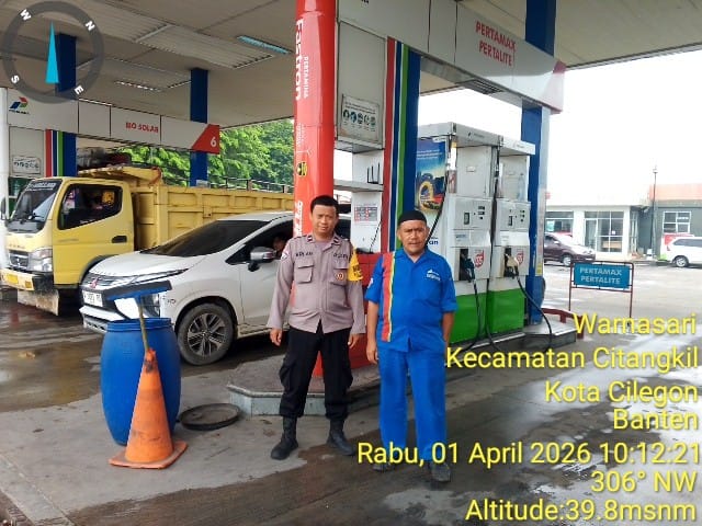 Cilegon - Kepolisian Polsek Ciwandan Polres Cilegon Polda Banten, melakukan pengecekan stok Bahan Bakar Minyak (BBM) di dua SPBU di wilayah Ciwandan, Cilegon, Rabu (01/04/2026).