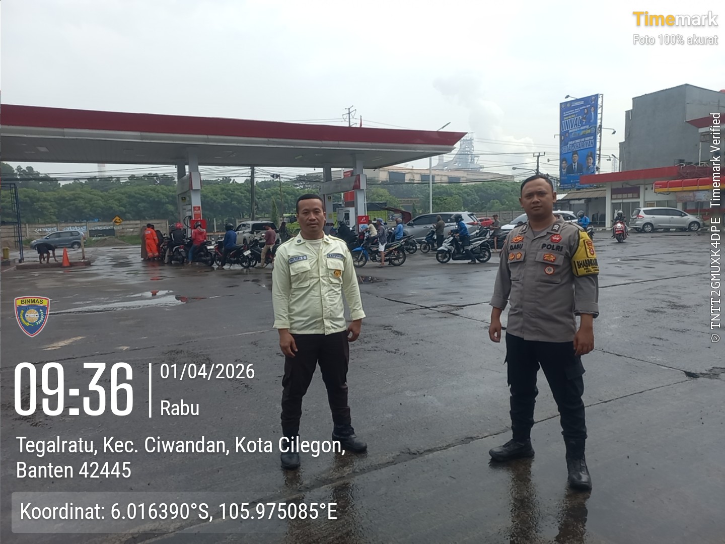 Cilegon - Kepolisian Polsek Ciwandan Polres Cilegon Polda Banten, melakukan pengecekan stok Bahan Bakar Minyak (BBM) di dua SPBU di wilayah Ciwandan, Cilegon, Rabu (01/04/2026).