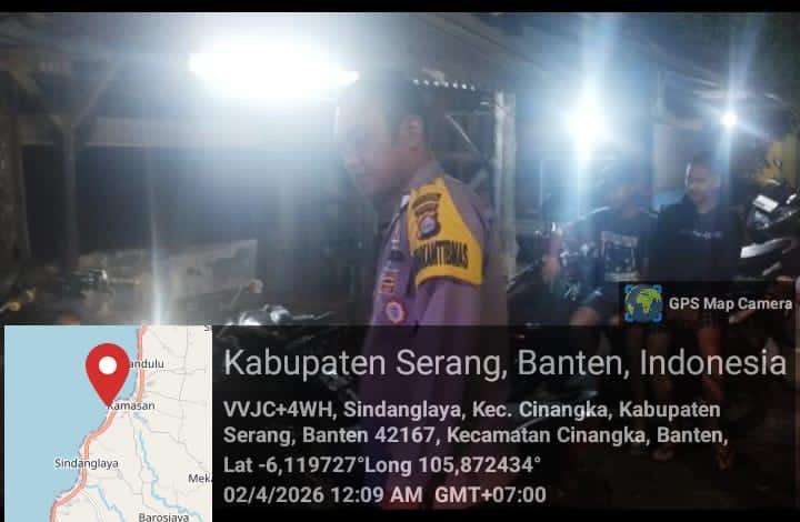 *Cilegon* – Dalam Rangka Pencegahan Kejahatan Jalanan dan Memelihara situasi keamanan dan menjaga serta memberikan rasa aman dan nyaman di masyarakat,Salah satu upaya untuk mewujudkan hal tersebut sebagaimana yang dilakukan oleh Personil Polsek Cinangka Polres Cilegon Polda Banten melaksanakan giat patroli blue light malam hari hingga menjelang pagi, Kamis (02/04/2026).