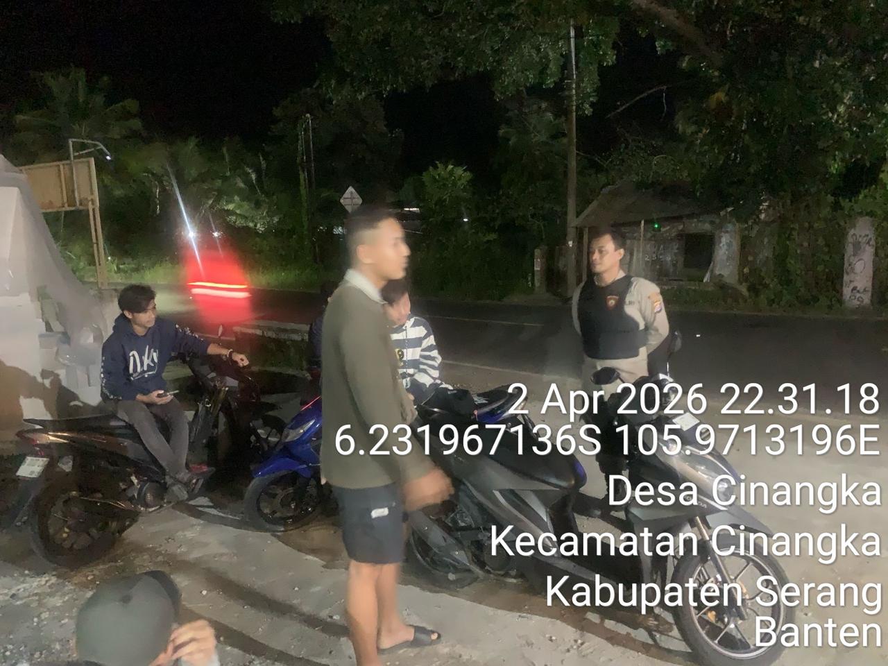 *Cilegon* – Dalam Rangka Pencegahan Kejahatan Jalanan dan Memelihara situasi keamanan dan menjaga serta memberikan rasa aman dan nyaman di masyarakat,Salah satu upaya untuk mewujudkan hal tersebut sebagaimana yang dilakukan oleh Personil Polsek Cinangka Polres Cilegon Polda Banten melaksanakan giat patroli blue light malam hari hingga menjelang pagi, Jumat (03/04/2026).