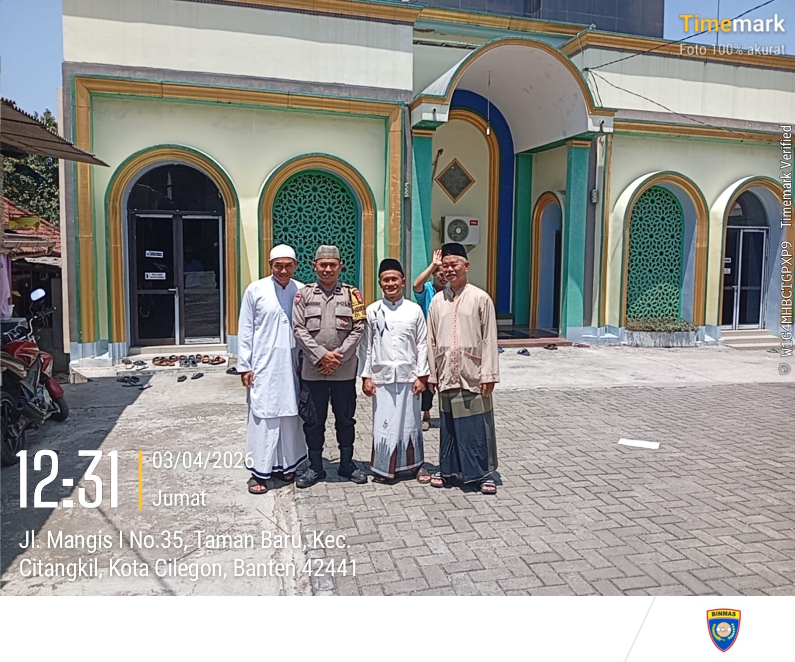 Cilegon - Bhabinkamtibmas Polsek Ciwandan Polres Cilegon Polda Banten Selesai melaksanakan Sholat secara berjama’ah dan Sampaikan Himbauan-himbauan Kamtibmas Kepada Masyarakat Jama'ah Yang ada Dimasjid, Jum'at (03/04/2026).