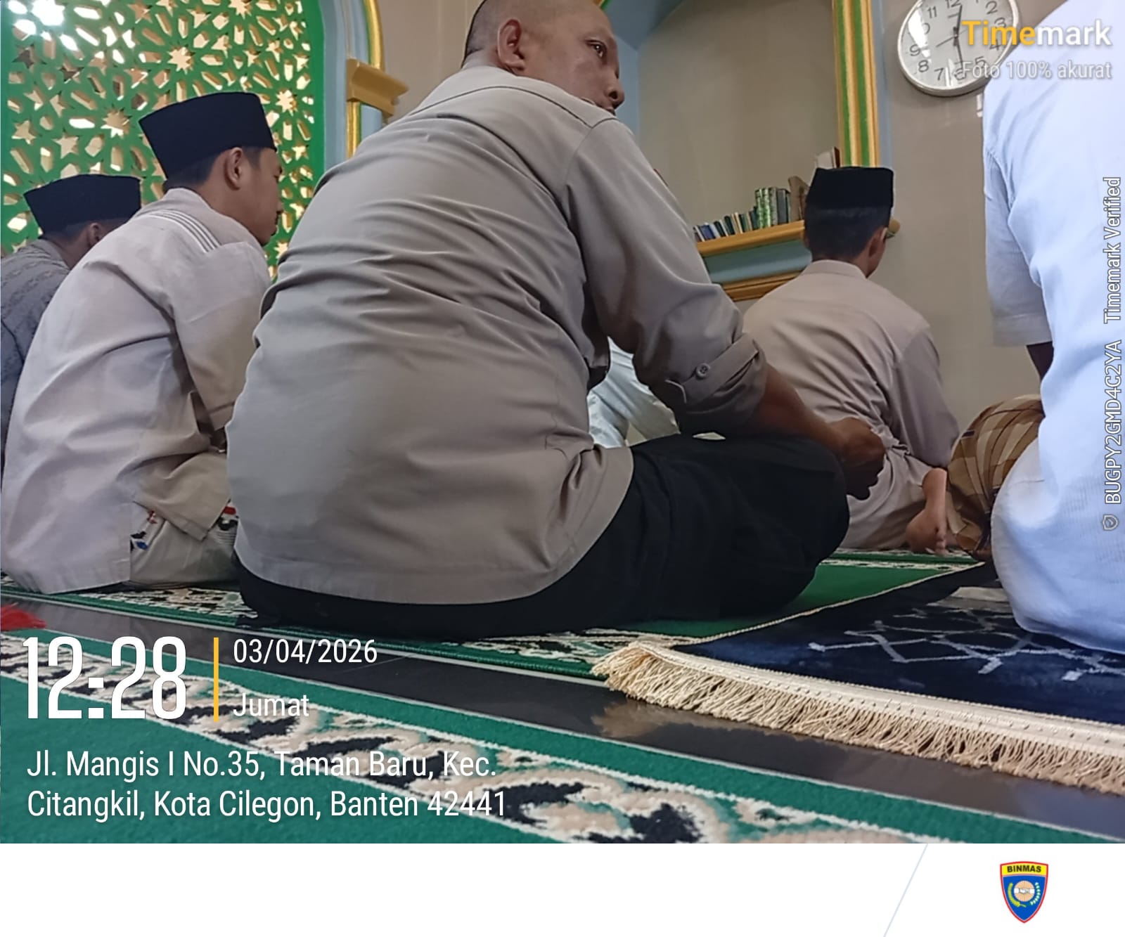 Cilegon - Bhabinkamtibmas Polsek Ciwandan Polres Cilegon Polda Banten Selesai melaksanakan Sholat secara berjama’ah dan Sampaikan Himbauan-himbauan Kamtibmas Kepada Masyarakat Jama'ah Yang ada Dimasjid, Jum'at (03/04/2026).