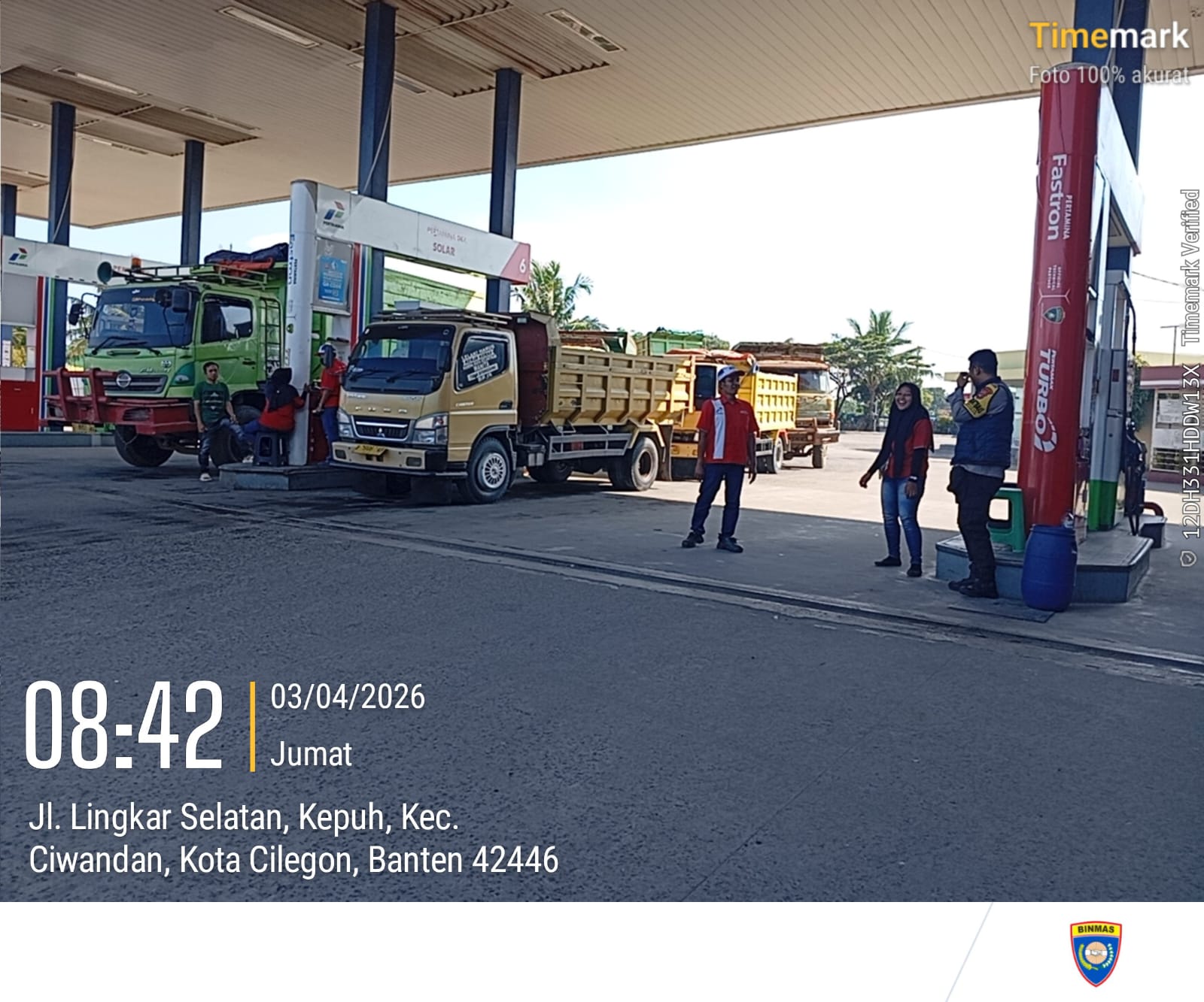Cilegon - Kepolisian Polsek Ciwandan Polres Cilegon Polda Banten, melakukan pengecekan stok Bahan Bakar Minyak (BBM) di dua SPBU di wilayah Ciwandan, Cilegon, Jum'at (03/04/2026).