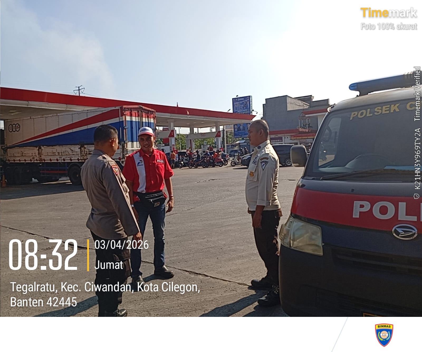 Cilegon - Kepolisian Polsek Ciwandan Polres Cilegon Polda Banten, melakukan pengecekan stok Bahan Bakar Minyak (BBM) di dua SPBU di wilayah Ciwandan, Cilegon, Jum'at (03/04/2026).