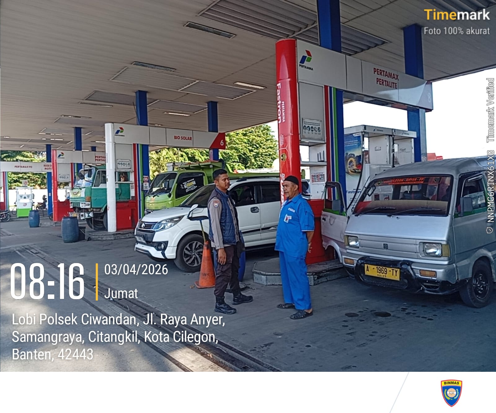 Cilegon - Kepolisian Polsek Ciwandan Polres Cilegon Polda Banten, melakukan pengecekan stok Bahan Bakar Minyak (BBM) di dua SPBU di wilayah Ciwandan, Cilegon, Jum'at (03/04/2026).