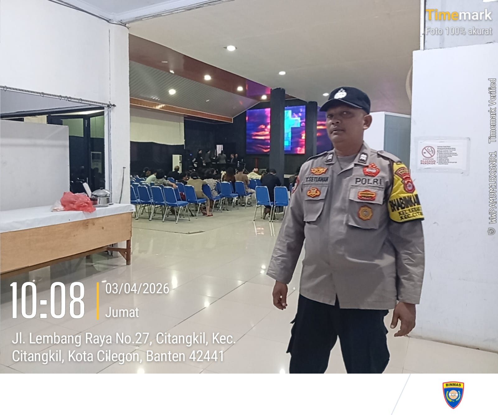 Cilegon - Wujud nyata pelayanan dan kehadiran Polri di tengah masyarakat ditunjukkan oleh Kapolsek Ciwandan Polres Cilegon Polda Banten KOMPOL Achri Dwi Yunito Dalam Pelaksanaan Pengamanan kegiatan keagamaan di Rumah Ibadah Pendeta Paul yang berlokasi di Lingkungan Tegal Cabe Kelurahan Citangkil Kecamatan Citangkil, Kota Cilegon,Jum’at (03/04/2026)