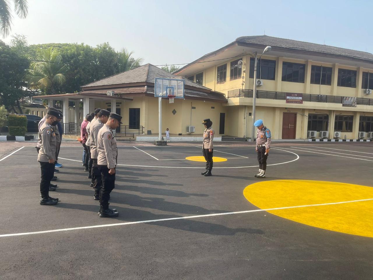 Personil Polres Cilegon melaksanakan Giat Apel Peleton Kerangka di lapangan Apel Polres Cilegon Polda Banten.