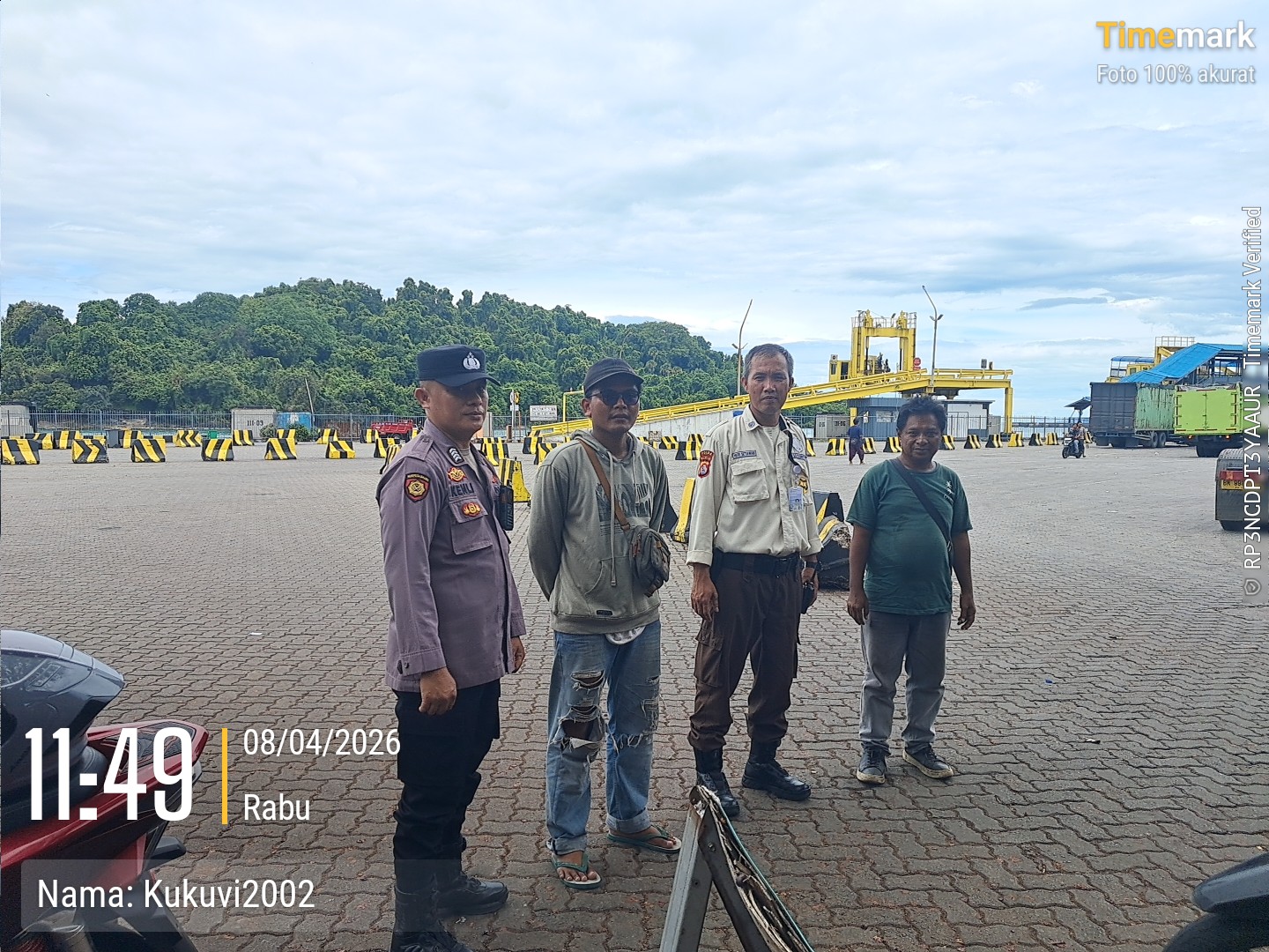 Cilegon - Personel Polsek Kskp Merak Polres Cilegon Polda Banten melaksanakan sambang dan patroli kawasan pelabuhan merak dalam rangka menjaga Harkamtibmas di Kawasan Pelabuhan Merak, Rabu (08/04/2026).