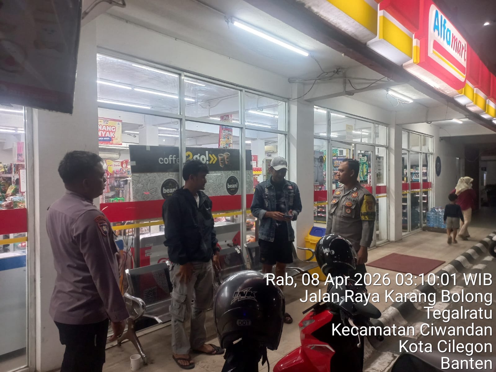 Cilegon - Patroli ini digelar oleh personil Polsek Ciwandan Polres Cilegon Polda Banten untuk Menekan Gangguan Kamtibmas dan mengantisipasi aksi kriminalitas Pada Jam-jam Rawan di pertokoan ataupun minimarket ,Di samping Patroli petugas juga melakukan himbauan dialogis baik dengan karyawan maupun para pengunjung, Rabu (08/04/2026).