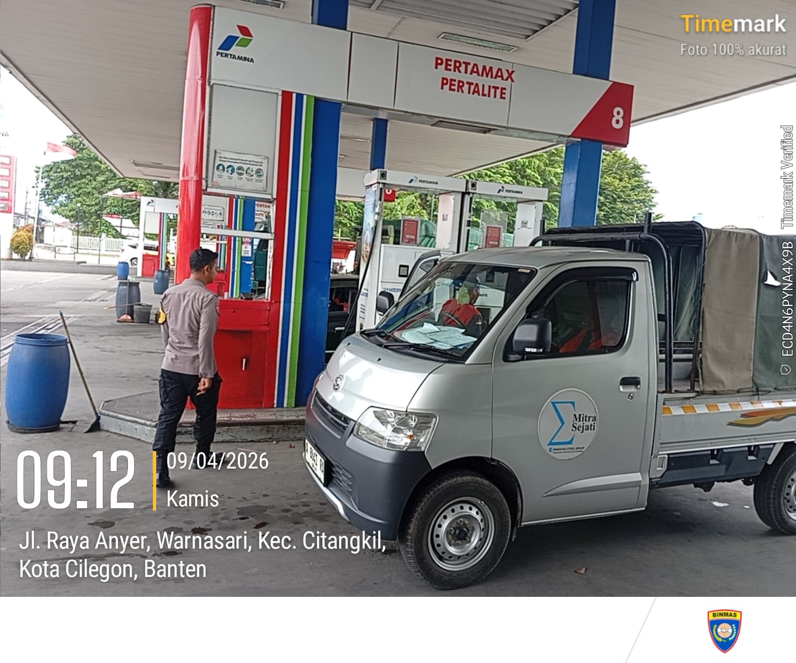 Cilegon - Kepolisian Polsek Ciwandan Polres Cilegon Polda Banten, melakukan pengecekan stok Bahan Bakar Minyak (BBM) di dua SPBU di wilayah Ciwandan, Cilegon, Kamis (08/04/2026).