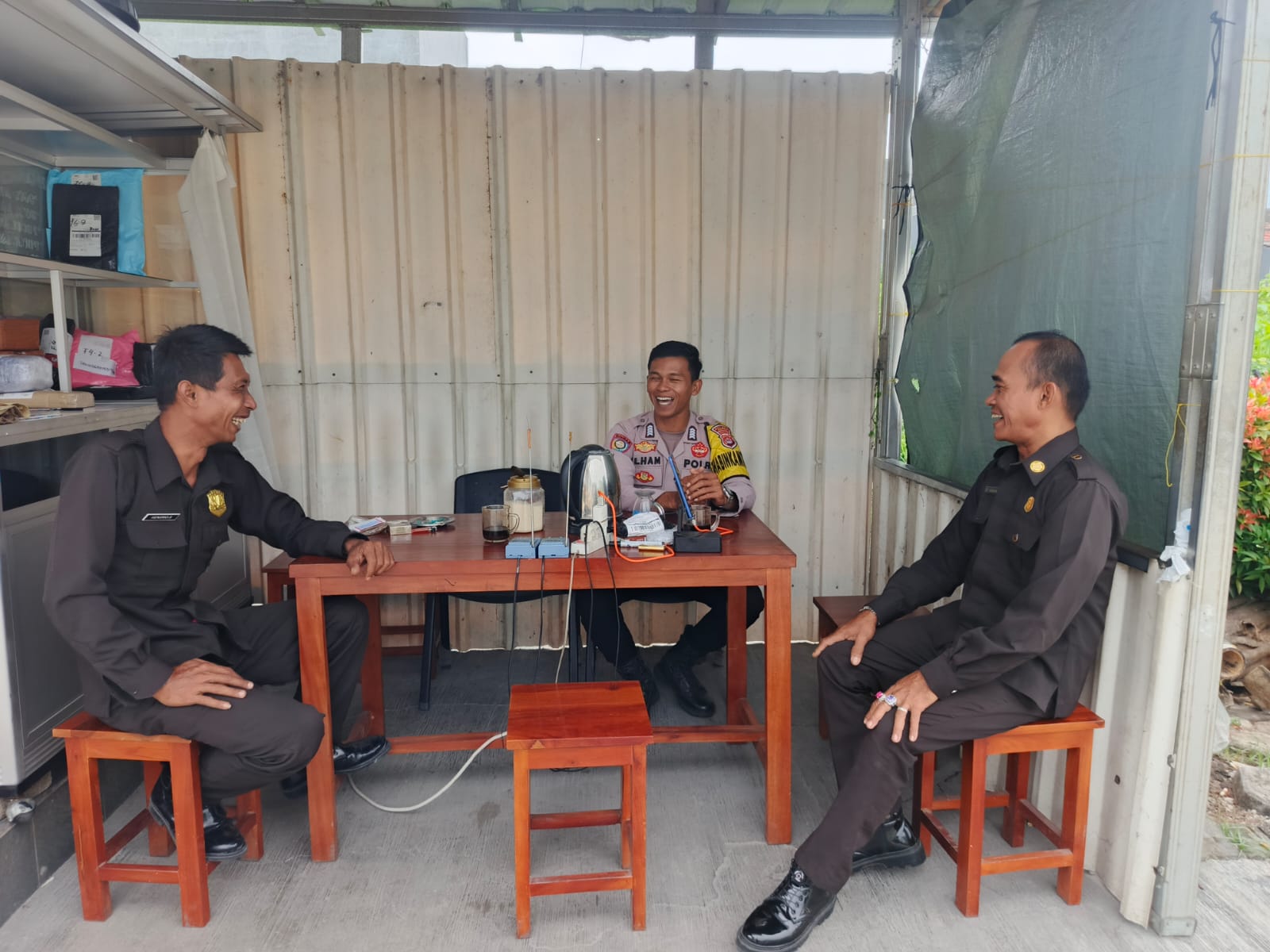 Personil Polsek Cilegon Polres Cilegon Berikan Himbauan Kepada Security jalin komunikasi kamtibmas.