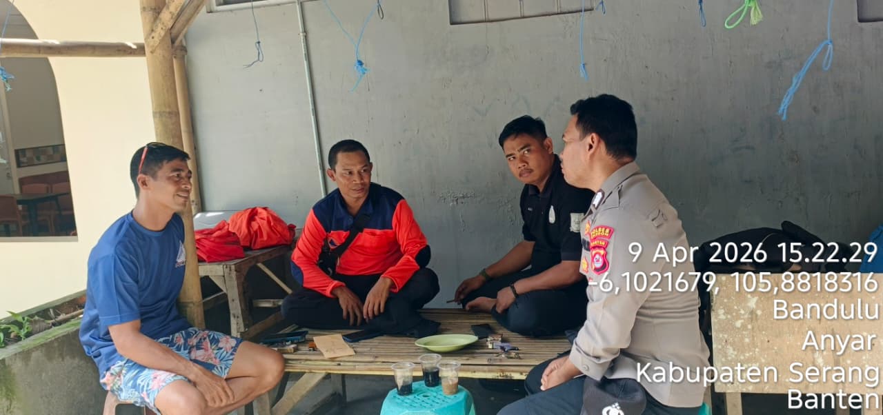 Cilegon - Polres Cilegon Polda Banten. Bhabinkamtibmas Desa Bandulu Kec. Anyer BRIPKA Asep Iskandar memberikan Rasa aman dilingkungan dengan melaksanakan patroli dialogis dan menyapa warganya serta menyampaikan himbauan kamtibmas di Pantai Panjang Kp. Jambangan Rt 002/002 Ds. Bandulu Kec. Anyar Kab. Serang. Kamis (09/04/2026).