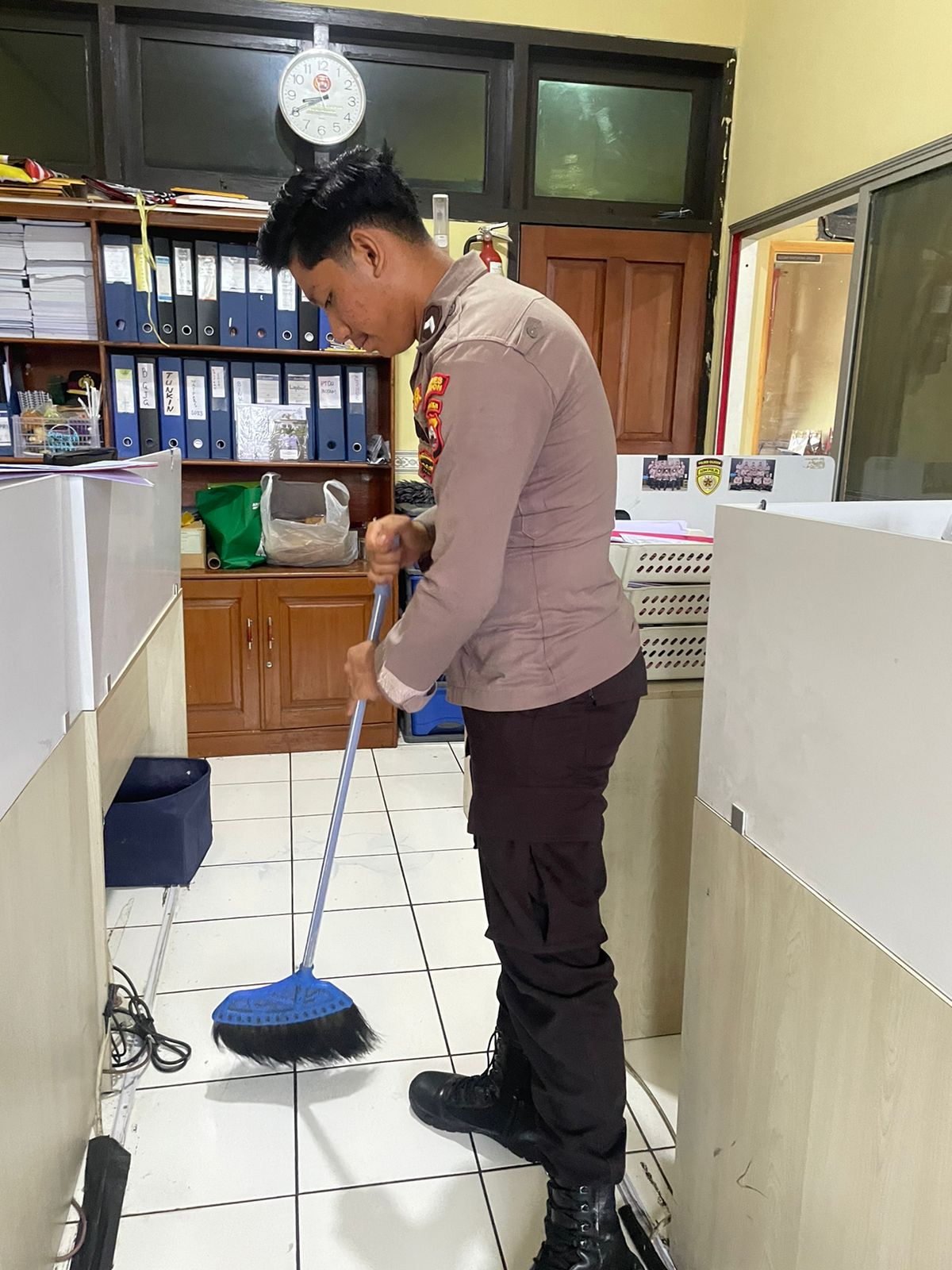 anggota SDM Polres Cilegon selalu menjaga kebersian ruangaan kerja setiap saat.