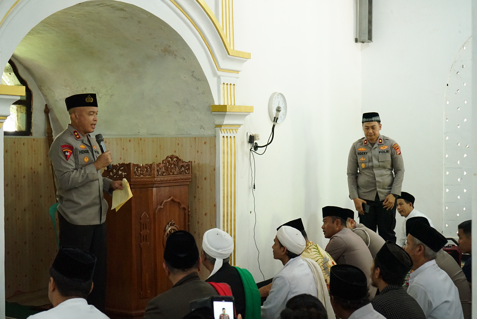 Cilegon –Kapolres Cilegon AKBP Dr Martua Raja Taripar Laut Silitonga S.H S.IK M.S.I mendampingi Kapolda Banten Irjen Pol Hengki S.IK,M.H melaksanakan kegiatan Salat Jumat Keliling (Jumling) di Masjid Miftahul Huda, Pondok Pesantren TQN Al-Mubarok, Kampung Pasir Angin, Desa Cinangka, Kecamatan Cinangka, Kabupaten Serang ,Jumat 10/4/26