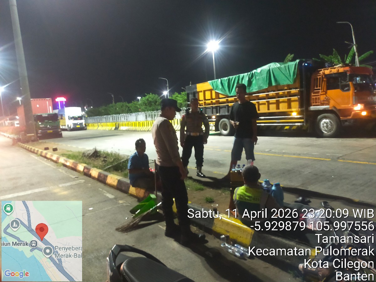 Cilegon - Personil Polsek Kskp Merak Polres Cilegon melaksanakan patroli di kawasan pelabuhan merak memberikan rasa aman dan damai, Minggu (12/04/2026)