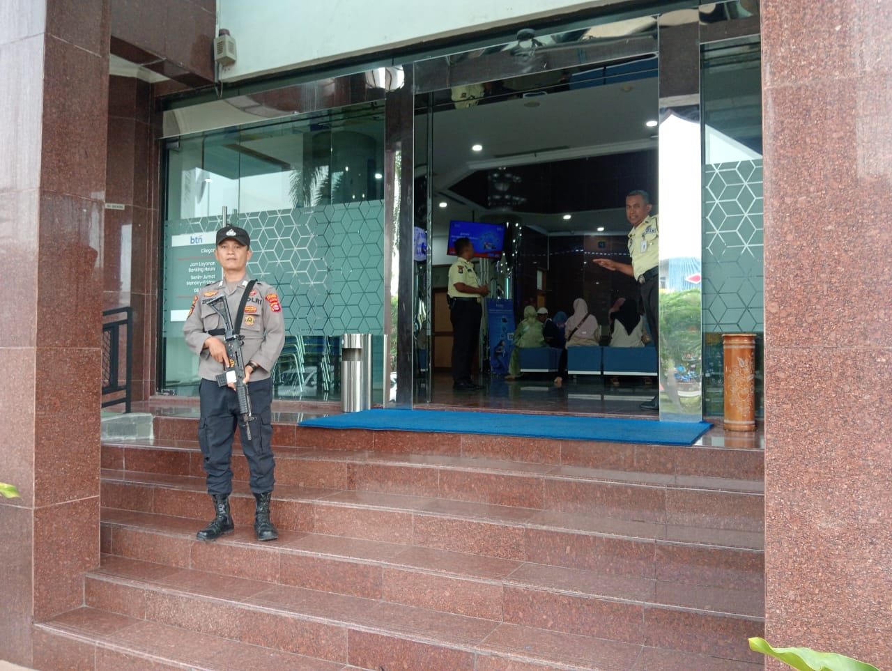 Cilegon – Polres Cilegon Polda Banten, Sebagai antisipasi adanya tindak kejahatan serta demi terciptanya rasa aman dan nyaman bagi para nasabah dan karyawan Bank  maupun perusahan, Personil Satuan Pamobvit Polres Cilegon lakukan pengamanan dilengkapi dengan senjata laras Panjang. Senin (13/04/2026).