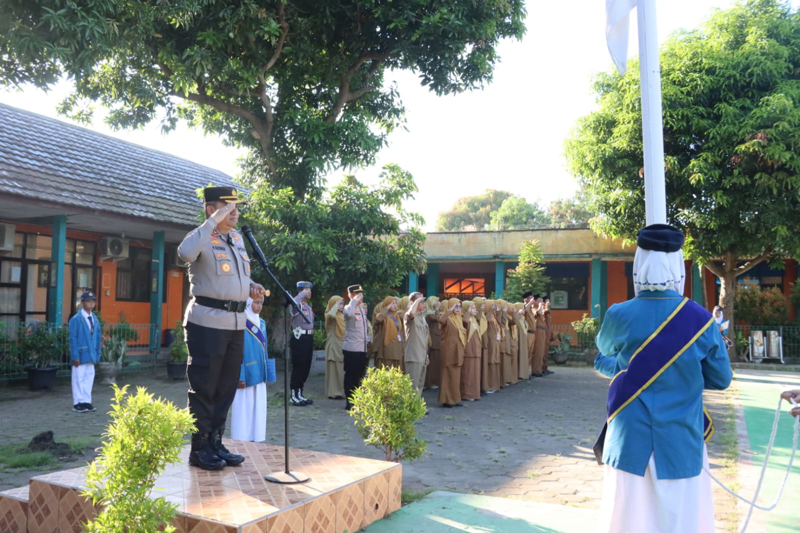 Polisi menjadi Pembina Upacara bendera, sebagai upaya Harkamtibmas di Lingkungan sekolah.