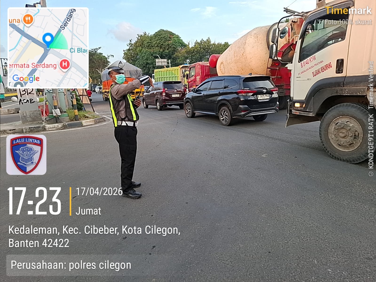 Cilegon, Satlantas Polres Cilegon Polda Banten – Berikan pelayanan kepada masyarakat Kasat lantas Polres Cilegon AKP Ridwan memerintahkan jajaran lalulintas untuk melaksanakan pengaturan lalu lintas di penggal – penggal jalan yang rawan kemacetan di Kota Cilegon, (Sabtu,18/4/2026)