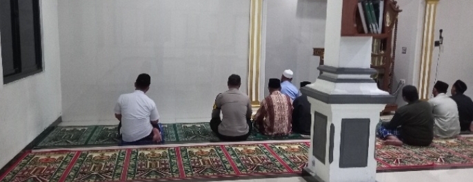 Setelah sholat, Bripka Agustoni juga menyempatkan diri berdialog santai dengan para jamaah. Momen ini dimanfaatkan untuk menyerap informasi, mendengarkan aspirasi, serta menyampaikan pesan-pesan keamanan dan ketertiban masyarakat (kamtibmas) secara natural.