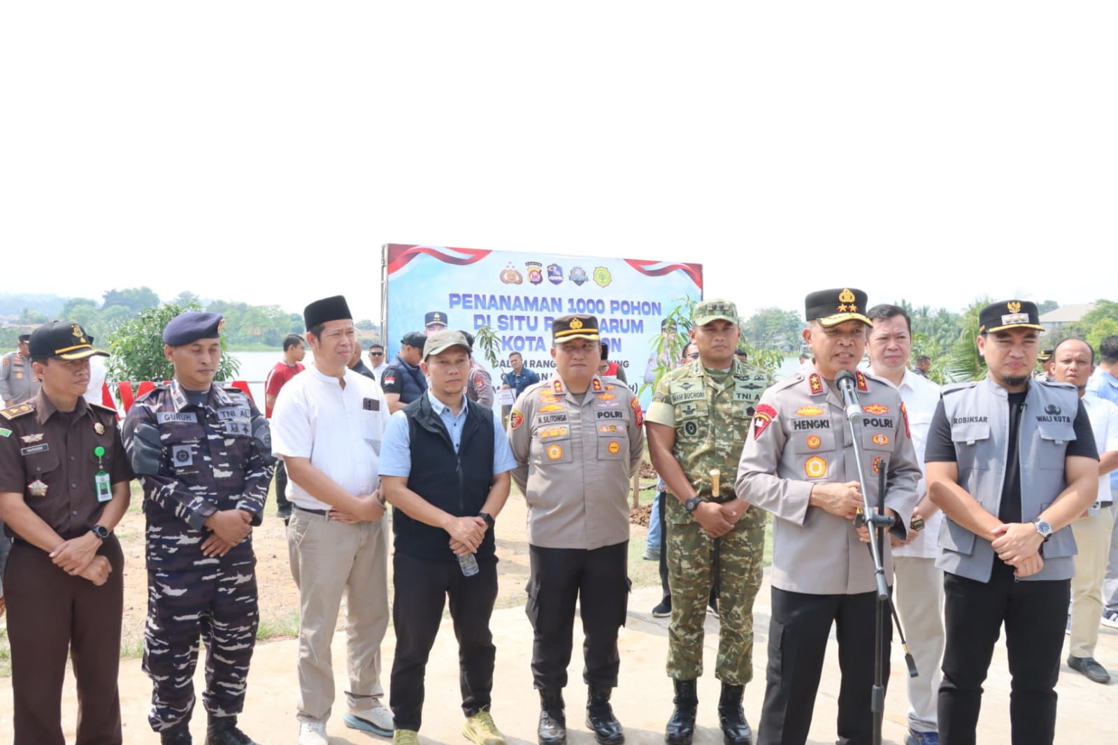 Cilegon – Upaya nyata menjaga kelestarian lingkungan terus digencarkan. Polda Banten bersama unsur TNI, pemerintah daerah, dan masyarakat menggelar kegiatan penanaman 1.000 pohon di kawasan Situ Rawa Arum, Kelurahan Rawa Arum, Kecamatan Grogol, Kota Cilegon, Jumat (17/04/2026).