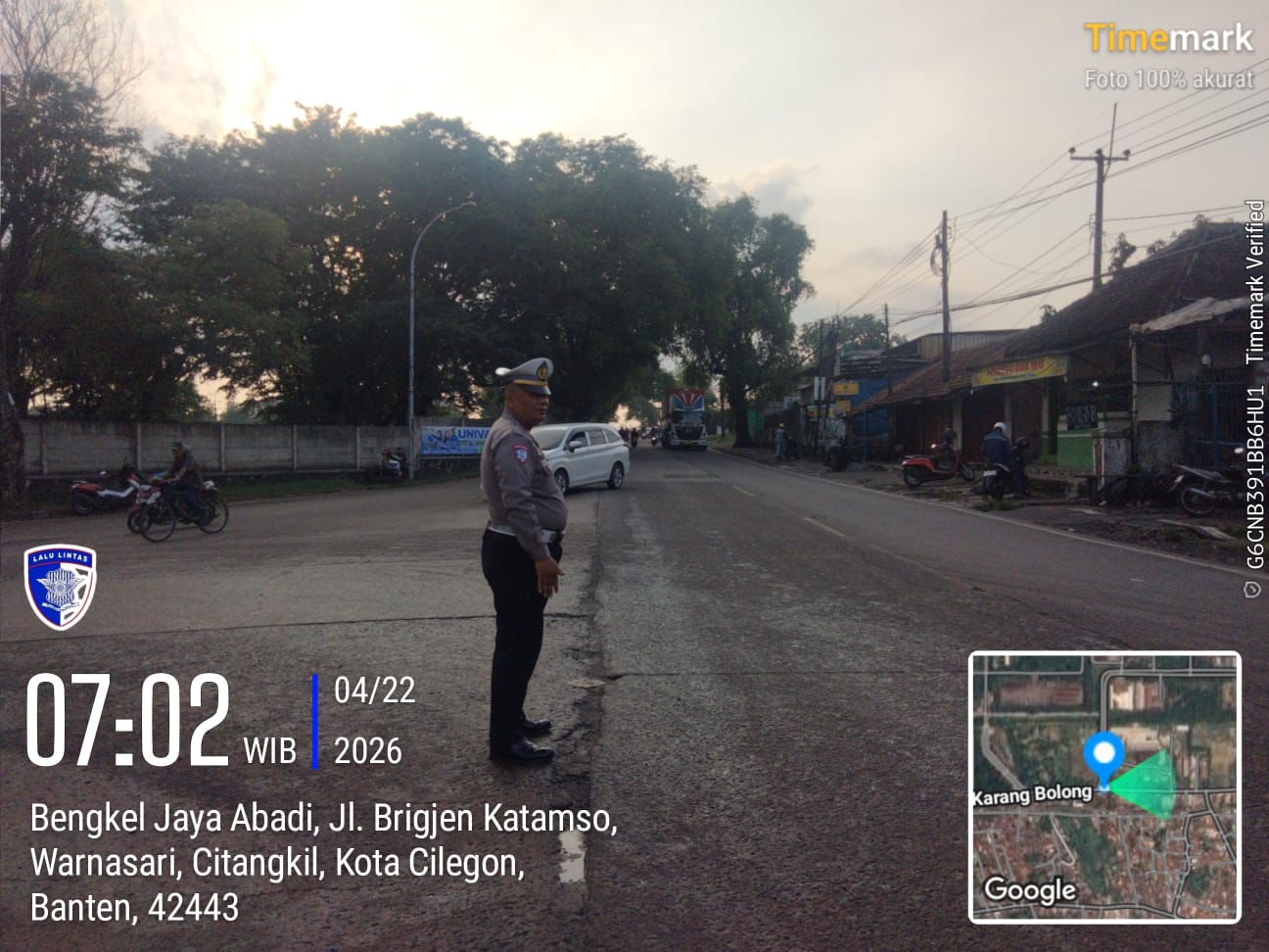 Cilegon - Pelayanan Prima Kepolisian Kepada Warga Masyarakat dan Guna menciptakan situasi lalu lintas yang aman, tertib dan lancar, Personel Unit Lantas Polsek Ciwandan Polres Cilegon Polda Banten secara rutin melaksanakan pengaturan lalu lintas, Rabu (22/04/2026).
